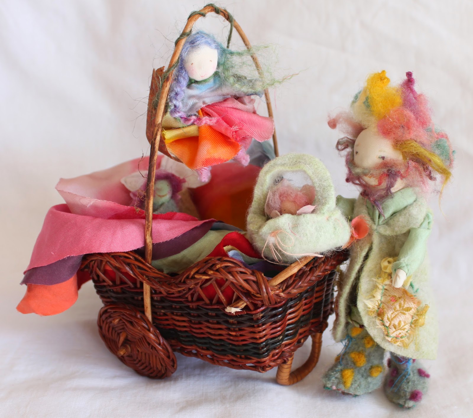 And ever so often in his work of granting the wishes of fairyland before they are wished, the Peddler simply helps others share their heart's kindness. Today with his cart he helped a dear gnome journey from glen to hollow to nook of root, where she shared sips of buttercup tea and showed other dear mamma the pattern of her baby seed warming cloak.